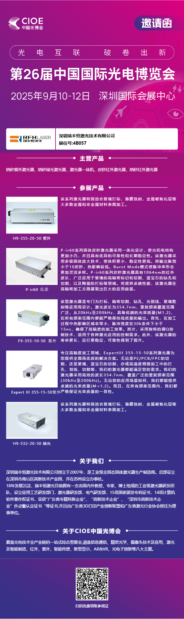 2025년 9월 10일부터 12일까지 RFH Laser는 광전자 소자 설계, 제조 공정 최적화, 제품 성능 개선 분야의 최신 혁신을 선보일 예정입니다.